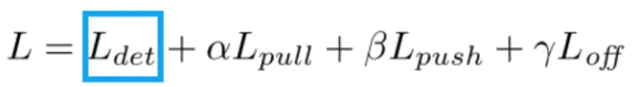 3. push/pull loss : embedding에 기여. Newell et al. 저자들의 "Associative embedding: End-to-end learning for joint detection and grouping"에서의 embedding 형식과 유사함. face recognition에서 contrastive 형태로 종종 사용되는 loss인데, 서로 같은 object끼리는 같은 embedding을 가지게 만들고 다른 object끼리는 gap을 두어 밀어내는 역할을 한다.