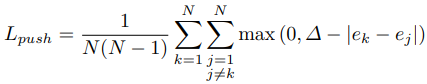 3. push/pull loss : embedding에 기여. Newell et al. 저자들의 "Associative embedding: End-to-end learning for joint detection and grouping"에서의 embedding 형식과 유사함. face recognition에서 contrastive 형태로 종종 사용되는 loss인데, 서로 같은 object끼리는 같은 embedding을 가지게 만들고 다른 object끼리는 gap을 두어 밀어내는 역할을 한다.