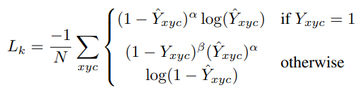 Lk는 gaussian kernel을 씌운 point의 위치를 focal loss로 계산한 것이고