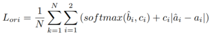 각 bin에 4개씩 8개의 스칼라를 사용했다. 첫번째 bin에서 2개는 softmax classification, 나머지 2개는 각 bin의 angle을 regress했다.