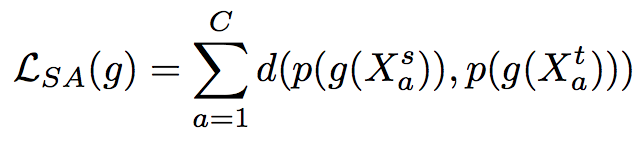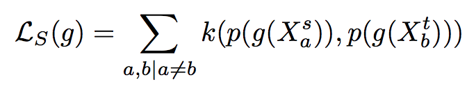 g는 feature extractor, DA의 목적중 하나는 source dataset과 target dataset을 구분하지 못하게 하는 것이므로, 클래스를 고려하여 그 둘의 분포의 거리를 loss로 계산하였다.