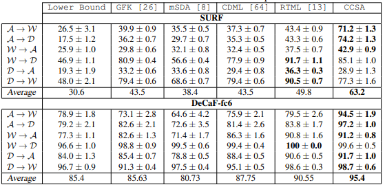 - A: amazon, W: Webcam, D:DSLR domain