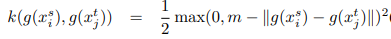 클래스가 서로 다른 경우 페널티를 부과하였다. k는 source dataset과 target dataset 분포의 거리를 측정하는 metric이다.