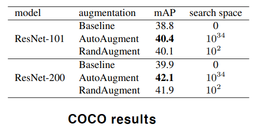 - COCO에서의 실험은 AA가 더 우수합니다만 search space의 효율성에서는 서로간의 넘을 수 없는 벽이 있는 것을 알 수 있습니다.
