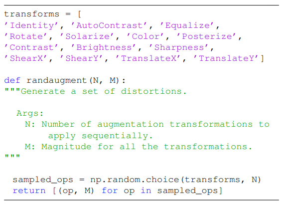 - 이전 논문에서는 이 범위에서 정수인 0~10으로 결정했으나, 이번 RA(RandAugment)에서는 1~30으로 magnitude 범위를 좀 더 넓게 설정했습니다.