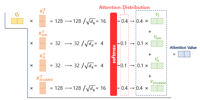 transformer 가 기존 모델들과 다른 특이한 점은 바로 이런 점인데, 정해진 학습 weight가 있다기 보다는 입력된 문장의 단어간의 유사도를 기반으로 weight를 학습한다는 것이다. (위치와 의미 모두)