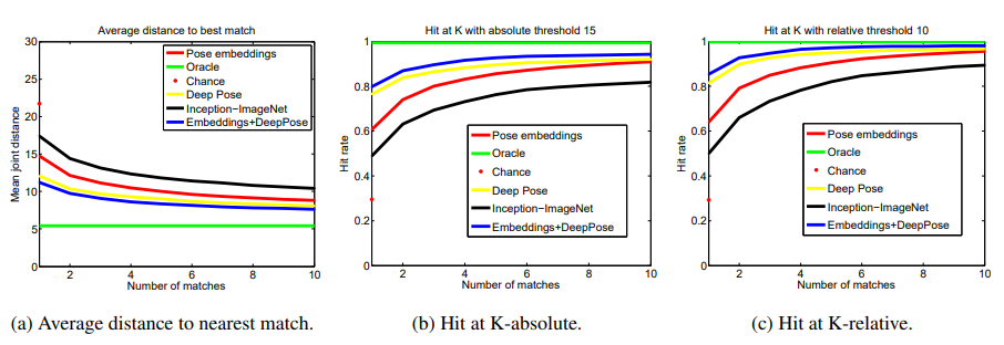2. Hit at K-absolute : 15pixel threshold mean joint dist.에 대해 실제로 correct 한 match인지 측정, K개중에 비율상 몇개의 correct match가 있는지 계수