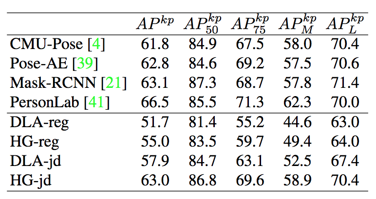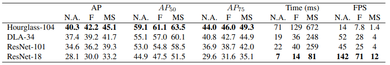 - Stacked Hourglass Network, ResNet, DLA (Deep Layer Aggregation)를 실험에 사용했다.