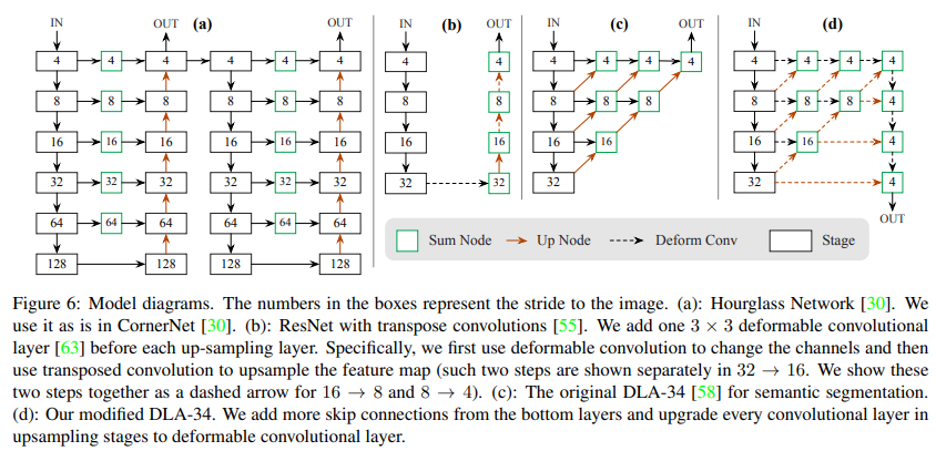 (c),(d)는 DLA-34 구조인데 (d)에서 약간 변형을 가해서 성능을 개선했다