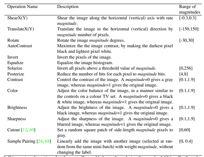 쉽게 얘기하면 본 논문은 데이터셋이 크거나 모델사이즈가 큰 경우 augment의 함수(rotate, shear 등과 같은 operation)와 상관 없이 각 함수의 normalized 된 magnitude를 조절하면서 최적값을 간단히 찾을 수 있는 방법에 대해서 소개합니다.