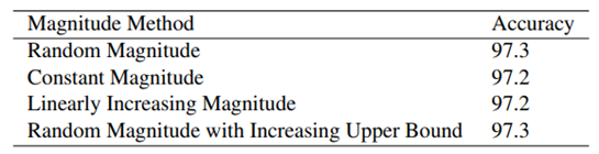 - 학습이 진행되는 동안 각 operation들의 mag 비율은 크게 변화하지 않습니다. 그러므로 RA방식에서 초기에 지정한 각 op별 magnitude를 굳이 변화시키지 않아도 될 것으로 저자들은 생각했습니다.