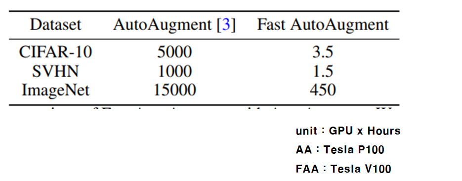 AA, FAA는 위에서 소개드렸고, PBA는 Population Based Augment(ICML19, 19.05)로서 유전 알고리즘을 이용한 최적화로 augment 함수를 최적화 하는 기법입니다.